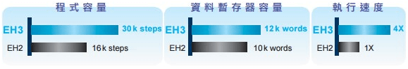 DVP-E系列高階主機,為因應(yīng)更復(fù)雜的應(yīng)用,程序及數(shù)據(jù)緩存器容量加大。